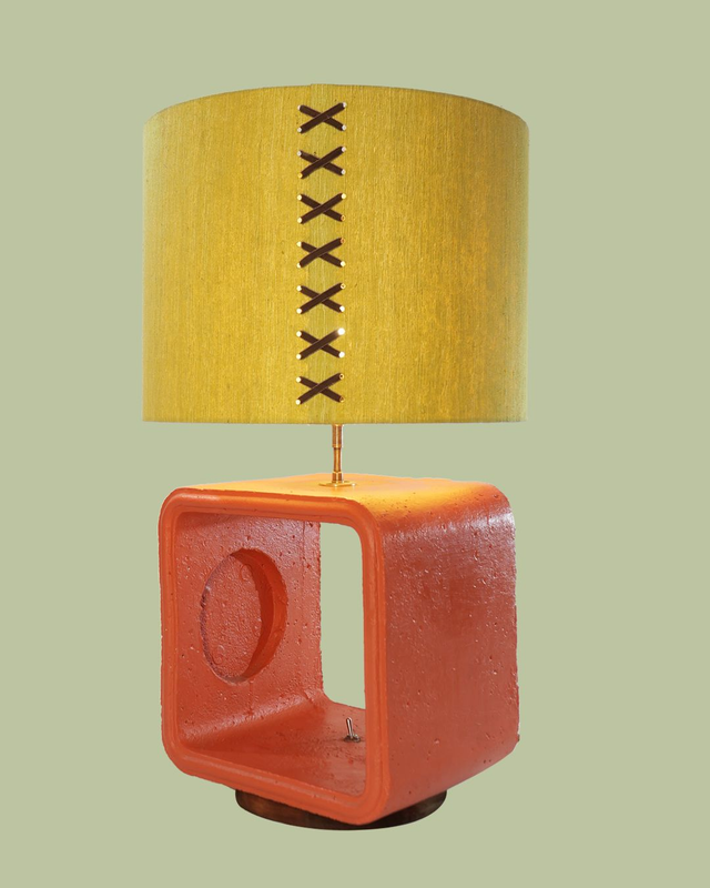 Une reproduction exacte de la grande Arche de la Défense, idéale pour les nostalgiques du parvis. La base est un regard de canalisation sur socle bois, l'abat jour fait sur mesure est issu des ateliers de tapisserie "L'ECHANTILLON" animé par Martine Pilot.